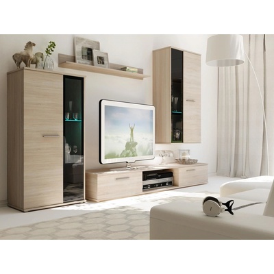 Sestava se skládá: v/š/h v cmKomoda 125 PCV ROSSA 4: [87/125/46 cm] Zrcadlo125 ROSSA 7 : [80/125/2,6 cm]Rohová vitrína: PCV ROSSA 12: [211/85,5/90 cm]Komoda165 PCV + nadvitrína ROSSA 16: [211/165/46 cm]