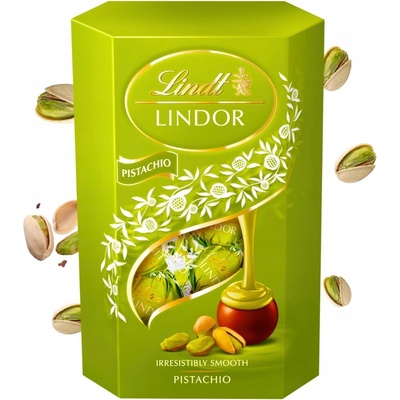 Dárkové balení se 14 jednotlivě balenými pralinkami z kakaového krému, křupavou vaflí a jádrem z celých mandlí s obalem z tmavé čokolády