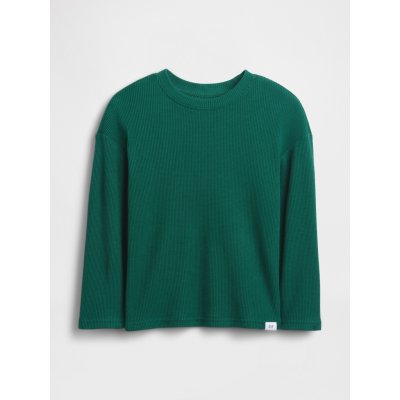 Chlapecké tričko z měkkého žebrovaného úpletu ve vaflovém vzoru je hřejivé, příjemné na dotek a ideální pro chladnější dny.Spadlá ramena, dlouhé rukávy a klasický kulatý výstřih podtrhují jeho univerzální vzhled, který se hodí k džínům i teplákům.Rovný, pohodlný střih sahá do pasu a zajistí volnost při každodenním nošení.