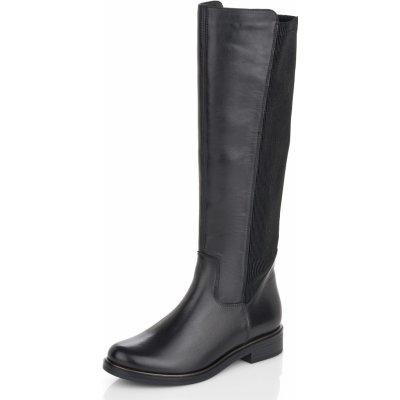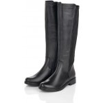 Dámské kozačky Remonte na pohodlném podpatku. Kombinace hladkého vzoru se stretch gumou pro ideální přizpůsobení boty k lýtku je ideální pro každodenní nošení.