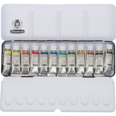 Sada akvarelových barev Schmincke Horadam 12x5ml Akvarelové barvy od německého výrobce Schmincke jsou určeny pro náročné uživatele. Barvy jsou vyrobené pouze z těch nejkvalitnějších pigmentů v maximální koncentraci. Pojmenovány po jednom ze zakladatelů firmy Josefu Horadamovi nabízejí díky ojedinělým procesům přípravy bohatou barevnost a vysokou světlostálost všech odstínů. Jako pojivo se používá důsledně vybraná nejlepší arabská guma.