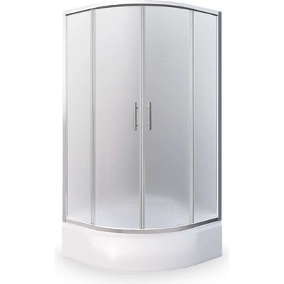 Čtvrtkruhový sprchový kout s dvoudílnými posuvnými dveřmi. Výška 183 cm, rozměry 90 x 90 cm, rádius 55 cm. Stabilní hliníkové profily nepodléhající korozi v bílé barvě....