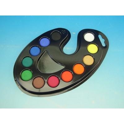 Klasické vodové barvy v soupravách po 12 odstínech. Mají jasné a syté barvy. Velikost tablet je větší, 30 mm v průměru. Barevník je obdélníkového tvaru z plastu.