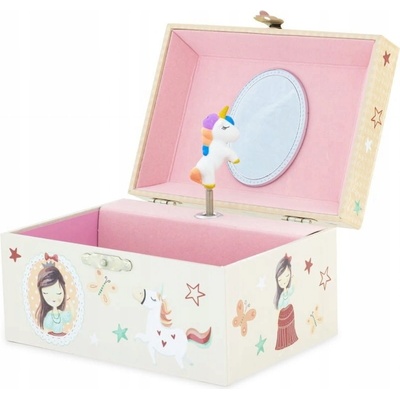 Šperkovnice se zásuvkou ve stylu hrací skříňky potěší malé dámy, které touží uložit své šperky jak se patří. Po otevření skříňky začne hrát jemná melodie z opery Labutí jezero...