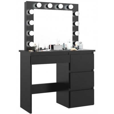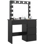 Jednoduchý toaletní stolek s osvětlením jako v americkém filmu, Vám umožní starat se o svou krásu jako skutečná hviezda.Poslúži při péči o pleť, líčení a tvorbě účesů. 12 LED žárovek dodává toaletnímu stolku šarm a eleganci. Jistě oceníte i 4 prostorné zásuvky, ve kterých si pohodlně odložíte všechny své kosmetické pomůcky, šperky a jiné doplňky. Díky černému provedení a designu, který v sobě spojuje jednoduchost a jemné dekorace ve stylu vintage, se perfektně hodí do ložnice,... Celý popis