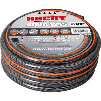Třívrstvá zahradní hadice. Průměr 3/4", délka 15 m. Pacovní tlak 10 bar, maximální tlak 25 bar. HECHT AQUA je odolná třívrstvá PVC hadice vyrobená kombinací měkčeného PVC a...